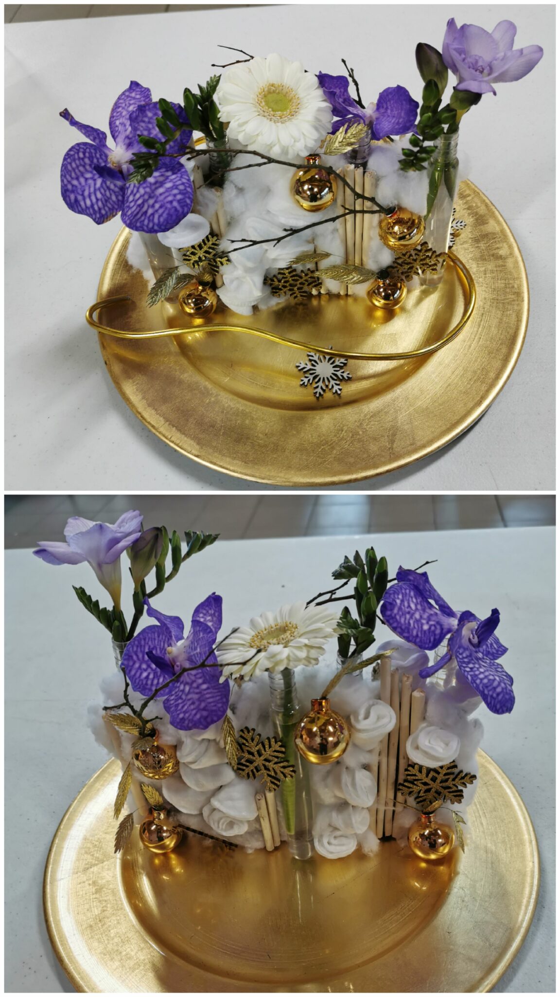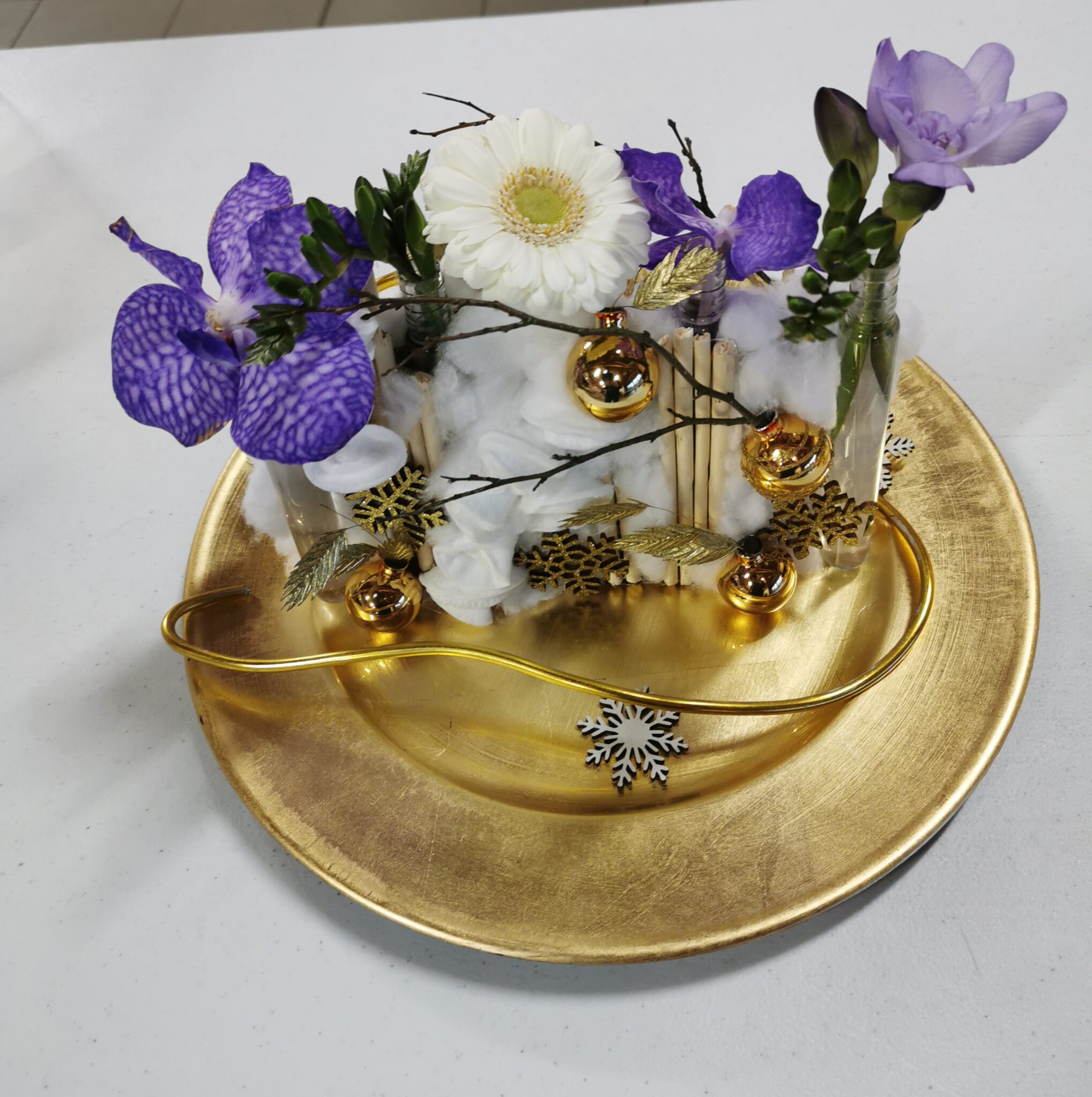 Le vendredi 14 février 2025 – salle Arc en Ciel : composition réalisée par l’atelier Art floral